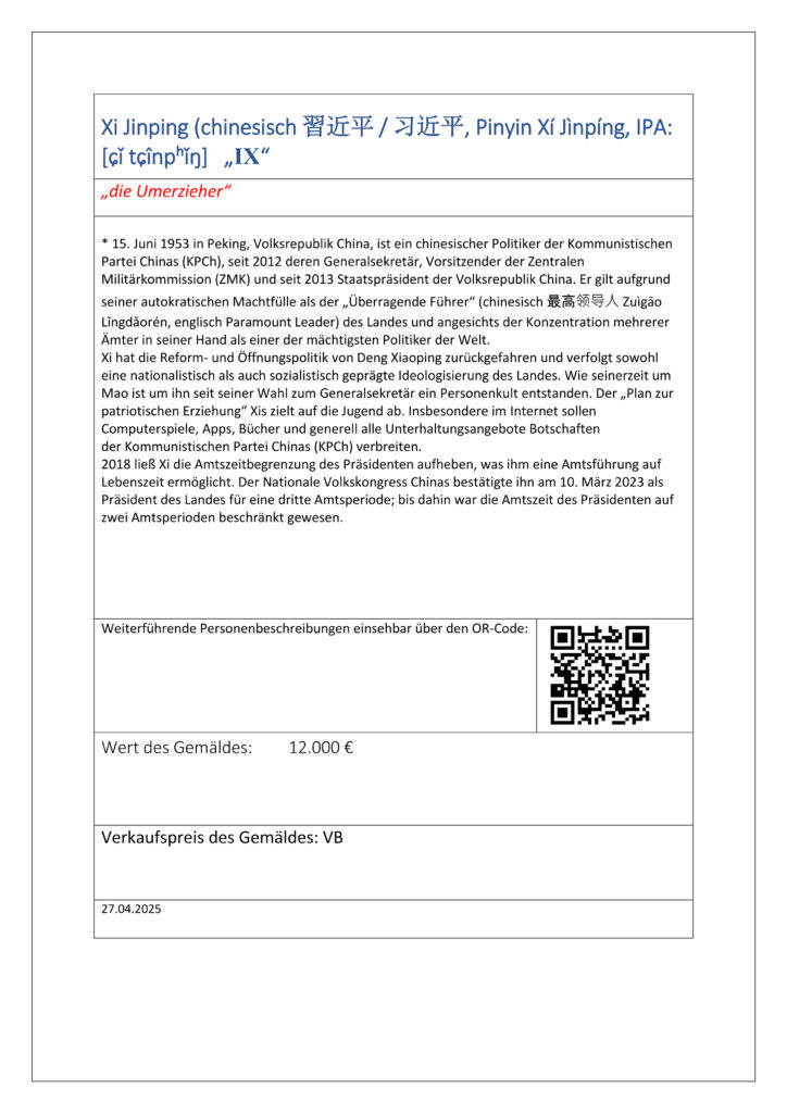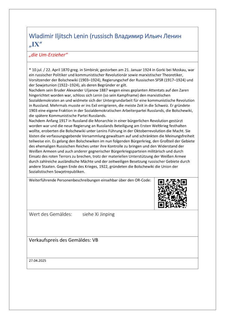 9. Xi Jinping (chinesisch 習近平 / 习近平, Pinyin Xí Jìnpíng, IPA: [ɕǐ tɕînpʰǐŋ] versus Wladimir Iljitsch Lenin (russisch Владимир Ильич Ленин „IX“